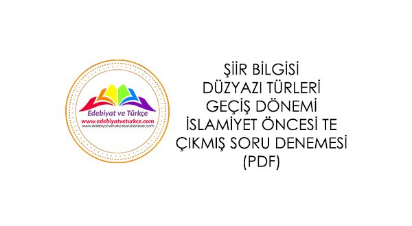 Şiir Bilgisi, İslamiyet Öncesi Türk Edebiyatı ile Düzyazı Türleri ve Geçiş Dönemi konularını ele alan bu denemede MEB, AÖF, ÖSYM soruları incelenerek derlenmiş ve bir deneme oluşturulmuştur. Bu denemeyi çözerek hem güncel bilgilere ulaşacak hem de kendinizi sınamış olacaksınız. İyi çalışmalar.
